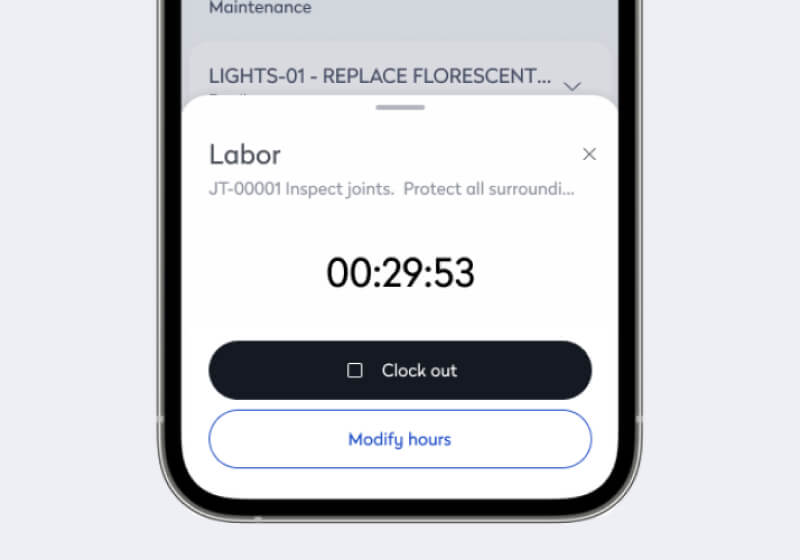 アプリ上で作業の開始、終了の打刻ができ、作業完了にかかる時間を記録することができます。想定時間との差異を把握することで、予防保全計画や作業チームの見直しなどに役立ちます。
