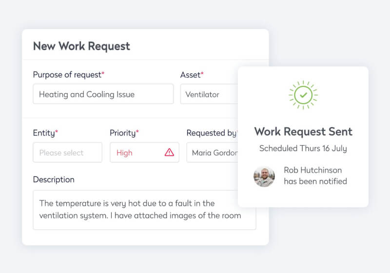 設備の不具合や清掃依頼などの事後保全作業に対してチケット管理を行います。作業依頼内容がシステムにリアルタイムで記録・共有されるため。関係者間の情報共有が円滑化します。