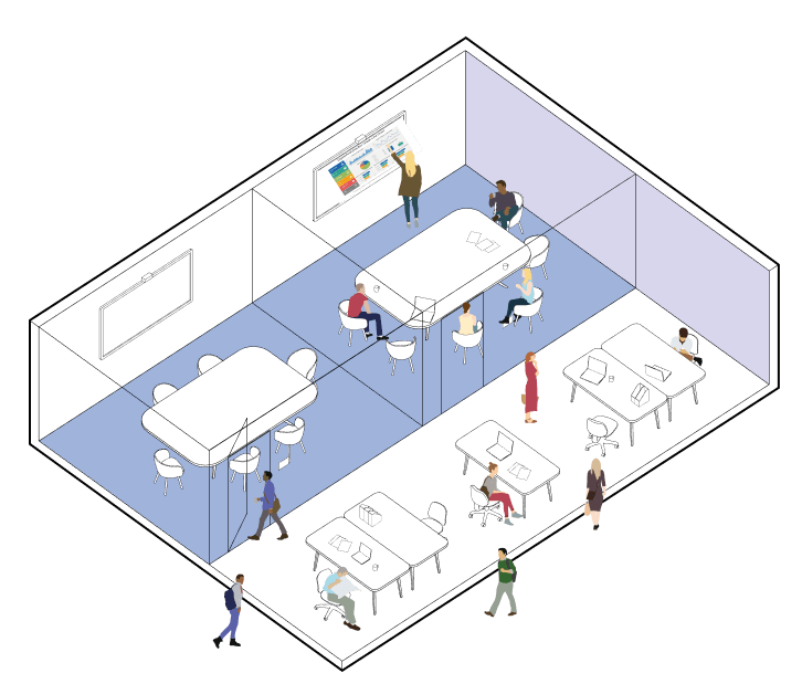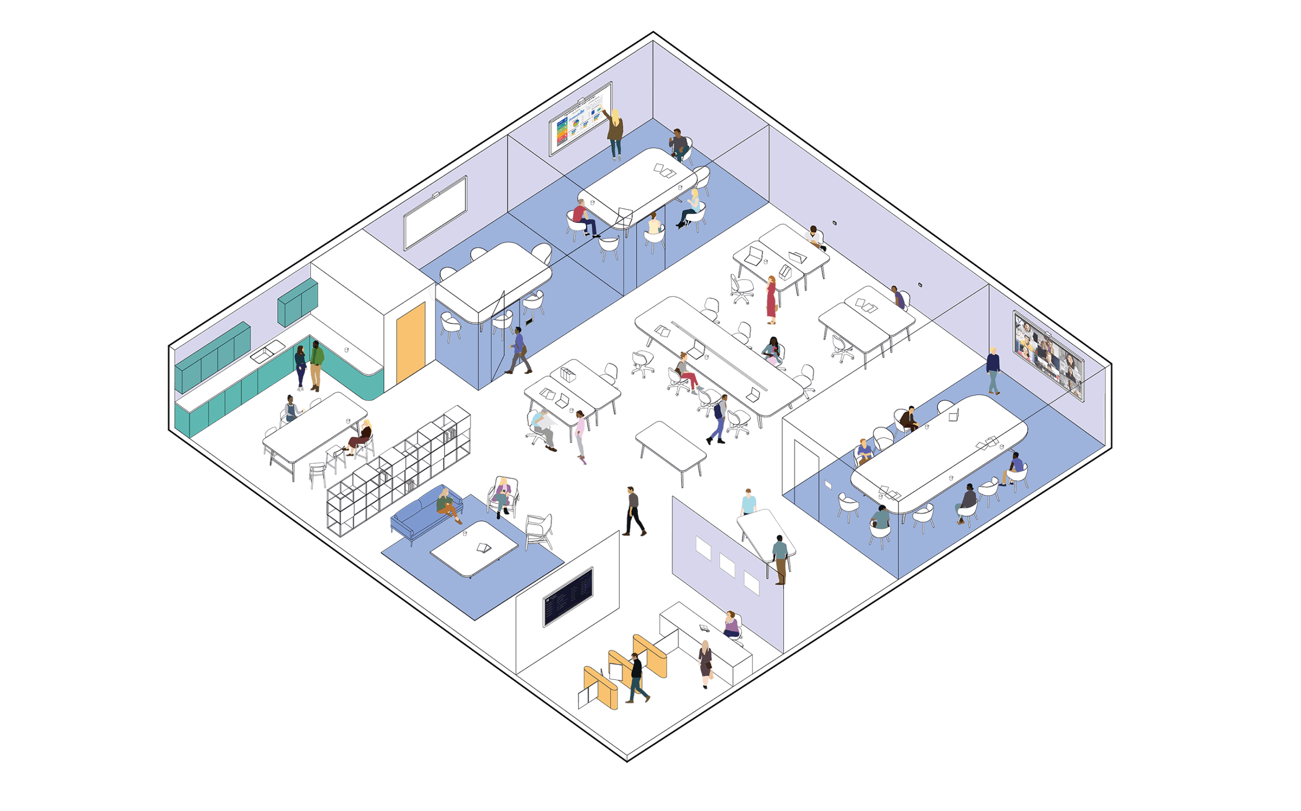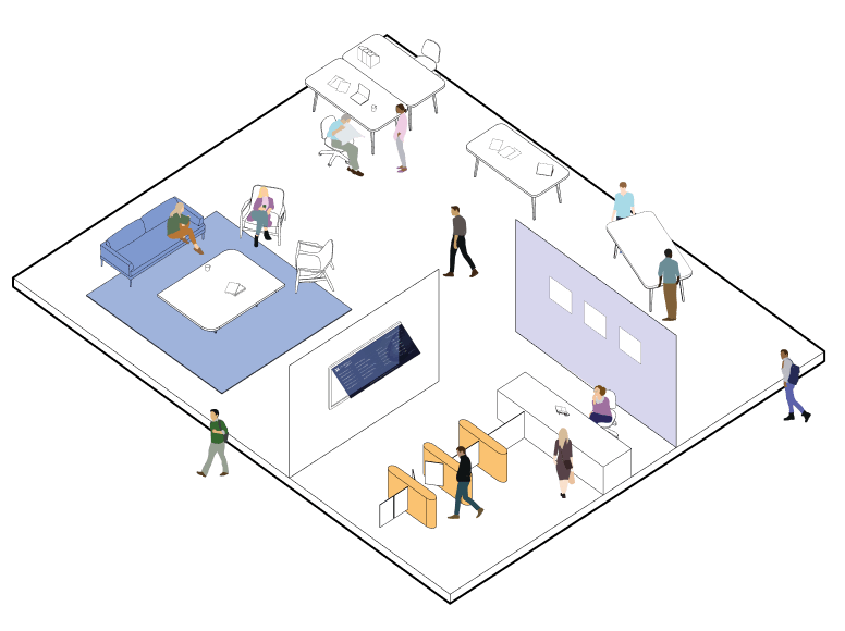 近年、ワークプレイスの見直しを行う組織が増えてきています。集中ゾーンやコミュニケーションゾーンなどを導入し、魅力的なワークプレイスにすることで、人々のパフォーマンス向上を図ります。