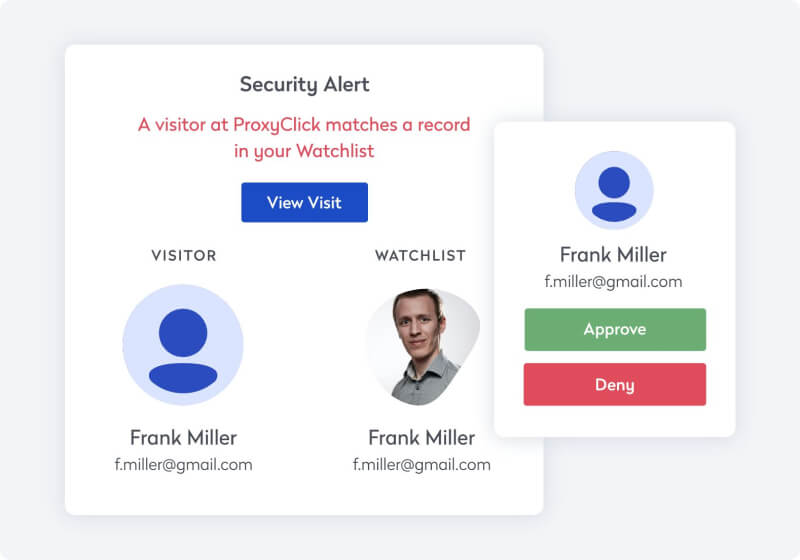 統合ウォッチリスト、ID照合、訪問者の事前承認機能により、職場環境を保護し、従業員を保護します。