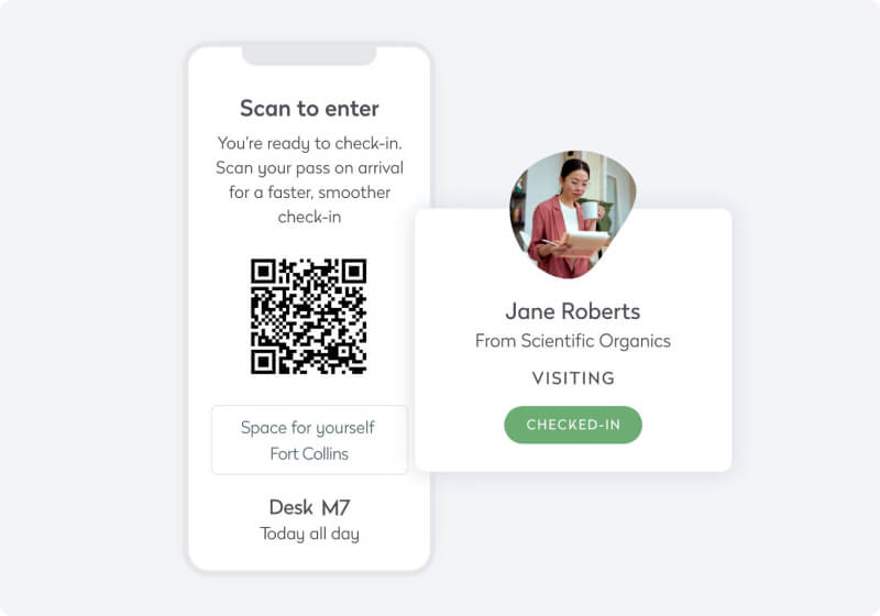 来訪者と従業員のデータを入退室管理システムと同期させ、固有のQRコードを送信して適切なタイミングでアクセスを許可し、誰が建物内にいるかに関するリアルタイム情報を取得します。