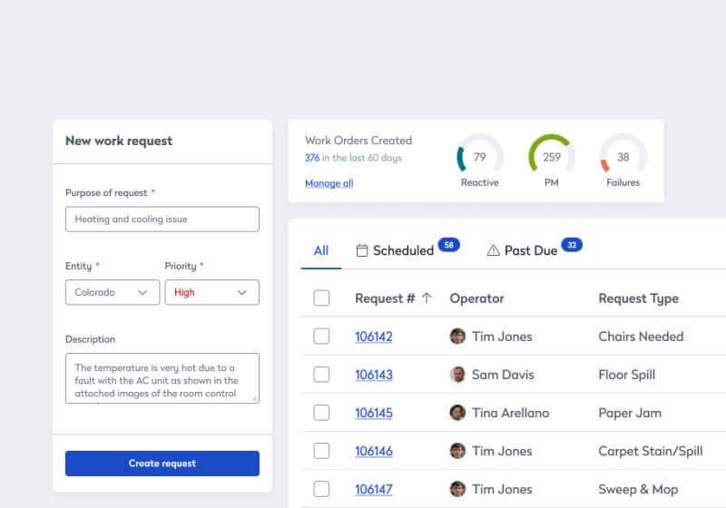 職員が依頼した清掃や空調の調整などのサポート依頼の内容を記録します。問題の傾向を把握し、事前に適切な対策を講じることで満足度の高いワークプレイスの実現を目指します。