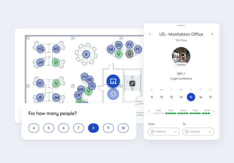 利用する人数、必要な設備、座席レイアウトなどの条件に応じて、適切な作業場所を提案してくれます。場所探しの時間を削減させることができ、業務時間の有効活用につながります。