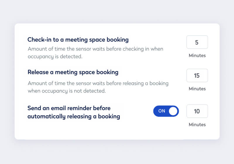 予約時刻になっても会議室や座席へのチェックインがなかった場合、自動で予約をキャンセルします。使われなかった席をを他の人が使えるようになるため、ワークプレイスの有効活用が促進されます。