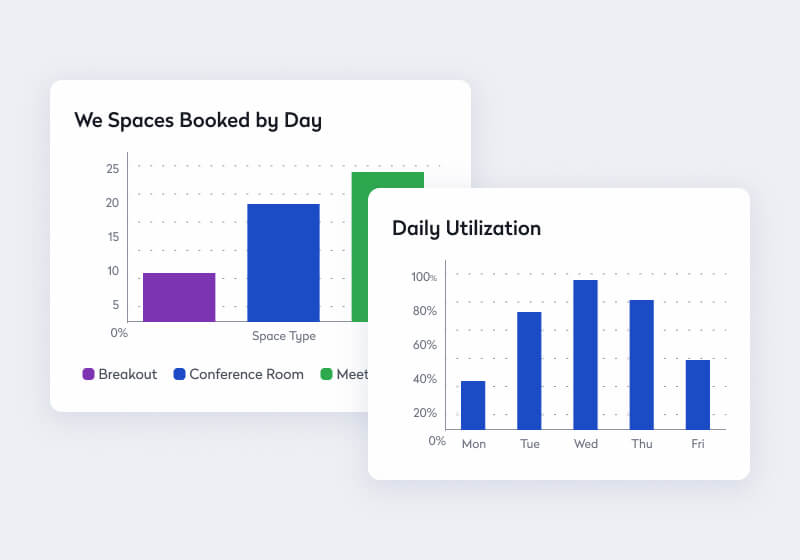 会議室・座席の利用状況について分析を行い、可視化します。利用頻度、平均利用人数、ピーク時の稼働率などを把握することで、スペース供給計画や改善に役立てます。